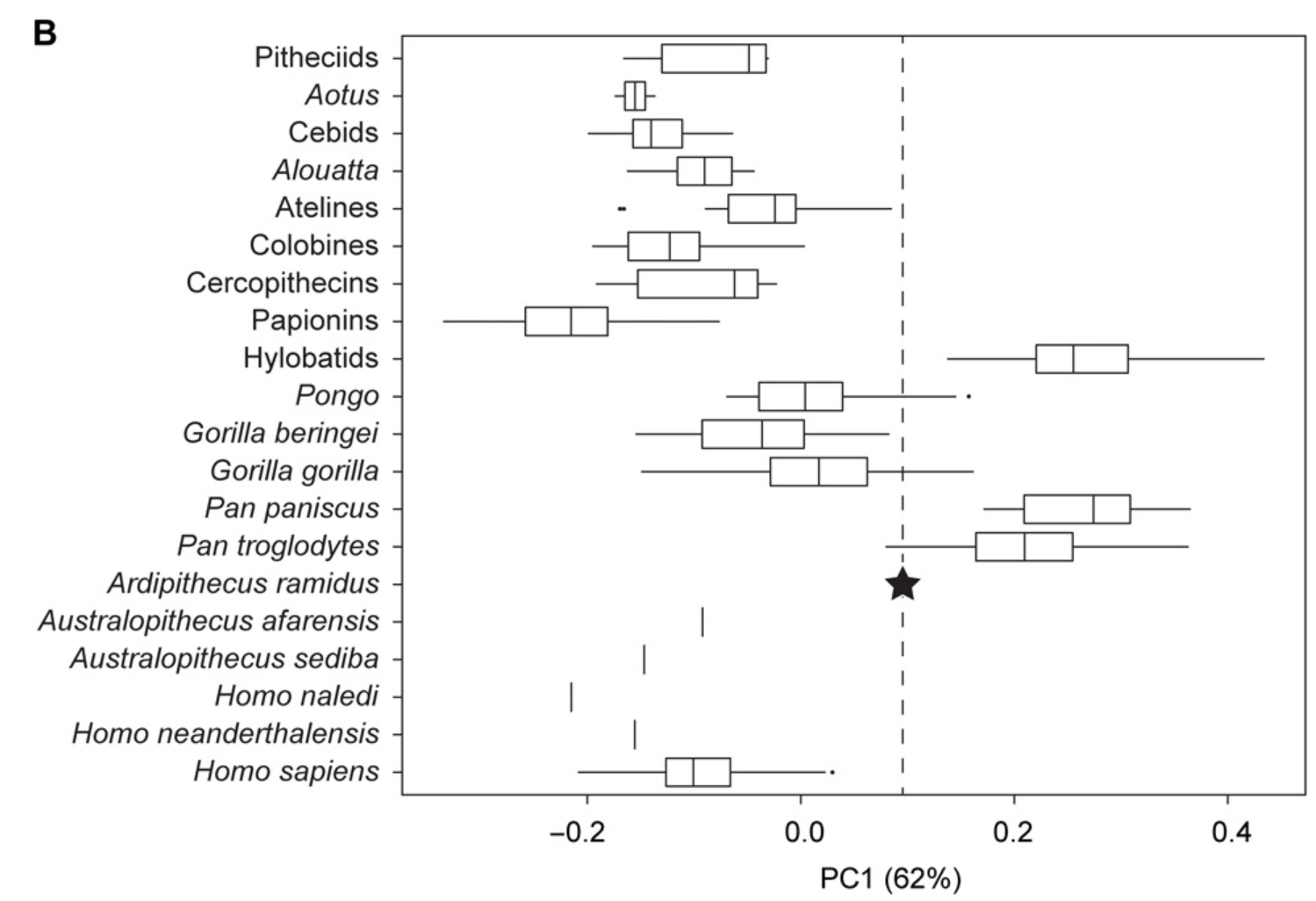 Not only does Ardi look like other suspensory apes when looking at individual features, but the pattern holds when we used advanced statistical methods to consider 6 different measurements at once.