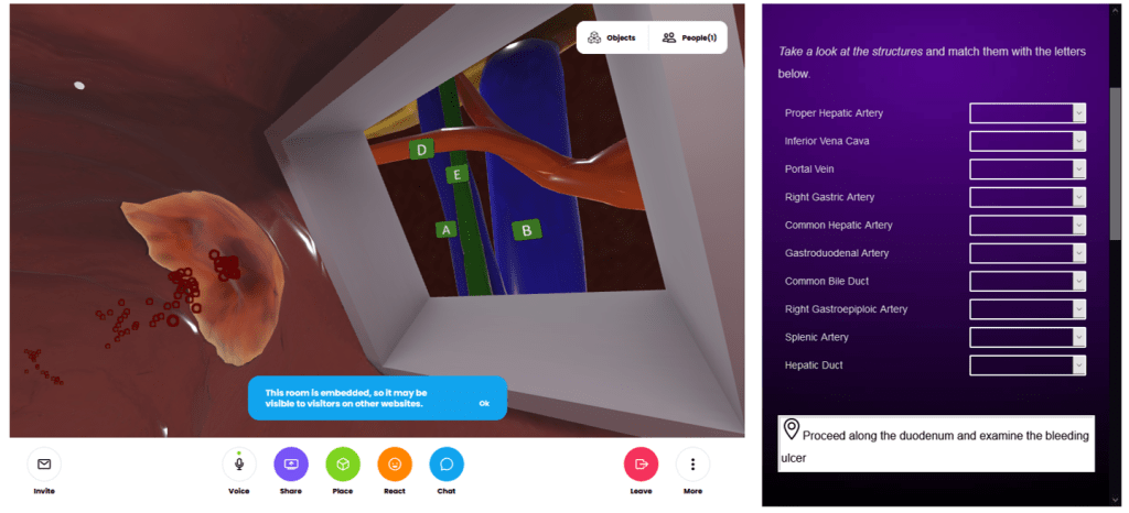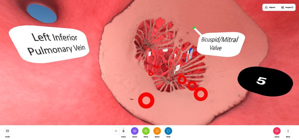 Students have entered the heart and GI tract on their desktops, navigating through multiple regions using their mouse and keyboard reminiscent of PC based gaming. The heart was later redesigned for VR, as was the pterygopalatine fossa, a small space in the middle of the skull. Associated with each XR experience students were given tutorial experiences to learn pertinent skills and gain familiarity with the virtual world.